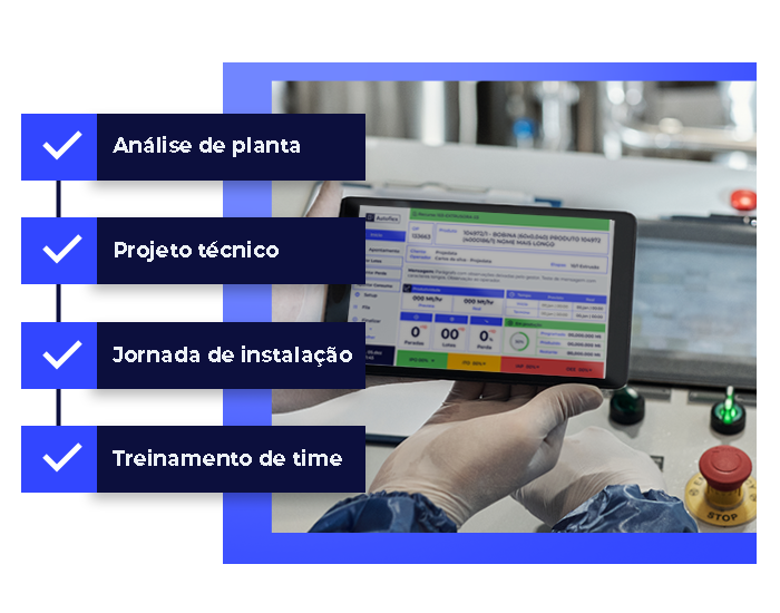 Montaremos uma jornada de instalação ágil e acompanharemos você em todo o processo (de forma presencial ou virtual), até o pleno funcionamento do Autoflex na sua fábrica.