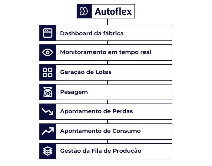 O Autoflex te ajuda a ganhar produtividade, melhorar significativamente a gestão, rastrear todo o processo e reduzir perdas e custos.